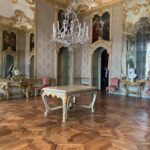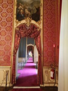Il nostro percorso di visita prosegue nel Salone delle Guardie Svizzere, ex Biblioteca dei Duchi di Genova, ambiente completamente trasformato negli anni Sessanta, che dà accesso alla Prima Anticamera, ex Sala delle Guardie del Corpo con sovrapporte di FrancescoAntoniani e grande dipinto del Claudio FrancescoBeaumont, con episodio dalle Storie di Alessandro e alla Seconda Anticamera, già Sala dei Valletti a piedi, anch’essa fornita di grandi tele di Beaumont e Giovanni Domenico Molinari, modello per la tessitura di arazzi per le Storie di Annibale; si prosegue con la Camera da letto del Duca del Chiablese dove è spirato il re Carlo Felice nel 1831, la Sala di udienza del duca del Chiablese (poi Salone Rosso, nel ‘900 Sala della duchessa di Pistoia), con sovrapporte di metà Settecento raffiguranti Storie di Enea e Didone di Mattia Franceschini, la Sala di udienza della duchessa del Chiablese (poi Salone da Ballo o Sala degli arazzi) con Le quattro parti del mondo, sovrapporte di Francesco De Mura; la Sala di Parata della duchessa del Chiablese (poi Sala da Pranzo con i duchi di Genova), con i dipinti sovrapporte di Gregorio Guglielmi e infine la Sala di parata del duca del Chiablese (Sala Rossa, già Salone di San Giovanni) con sovrapporte rappresentanti Allegorie delle virtù di Mattia Franceschini.
